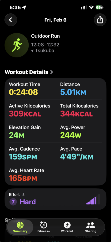 ただ、そこそこ疲れた。今はまだこのペースで10kmは厳しそうだし、4分40秒で5kmも厳しそうだ。